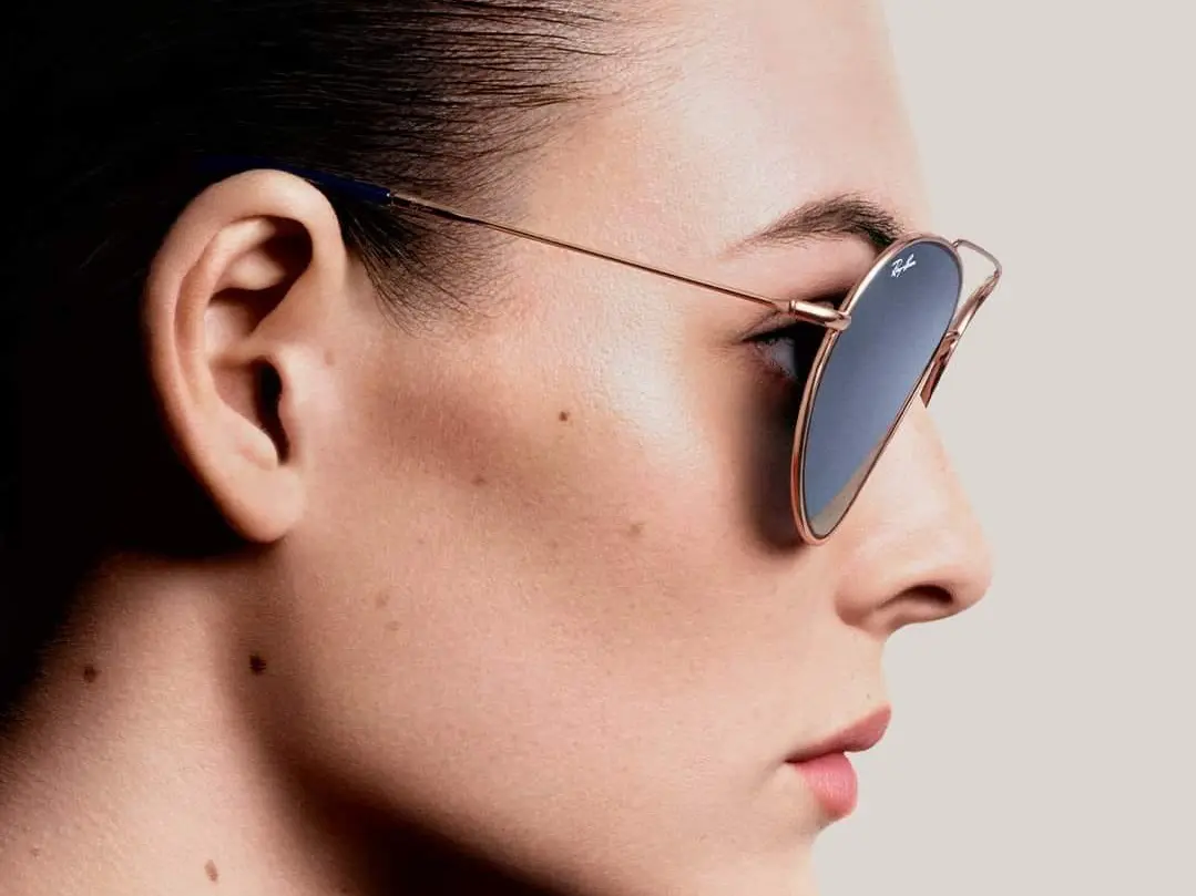 Óculos de sol com filtros UV e lentes polarizadas para maior proteção ocular.